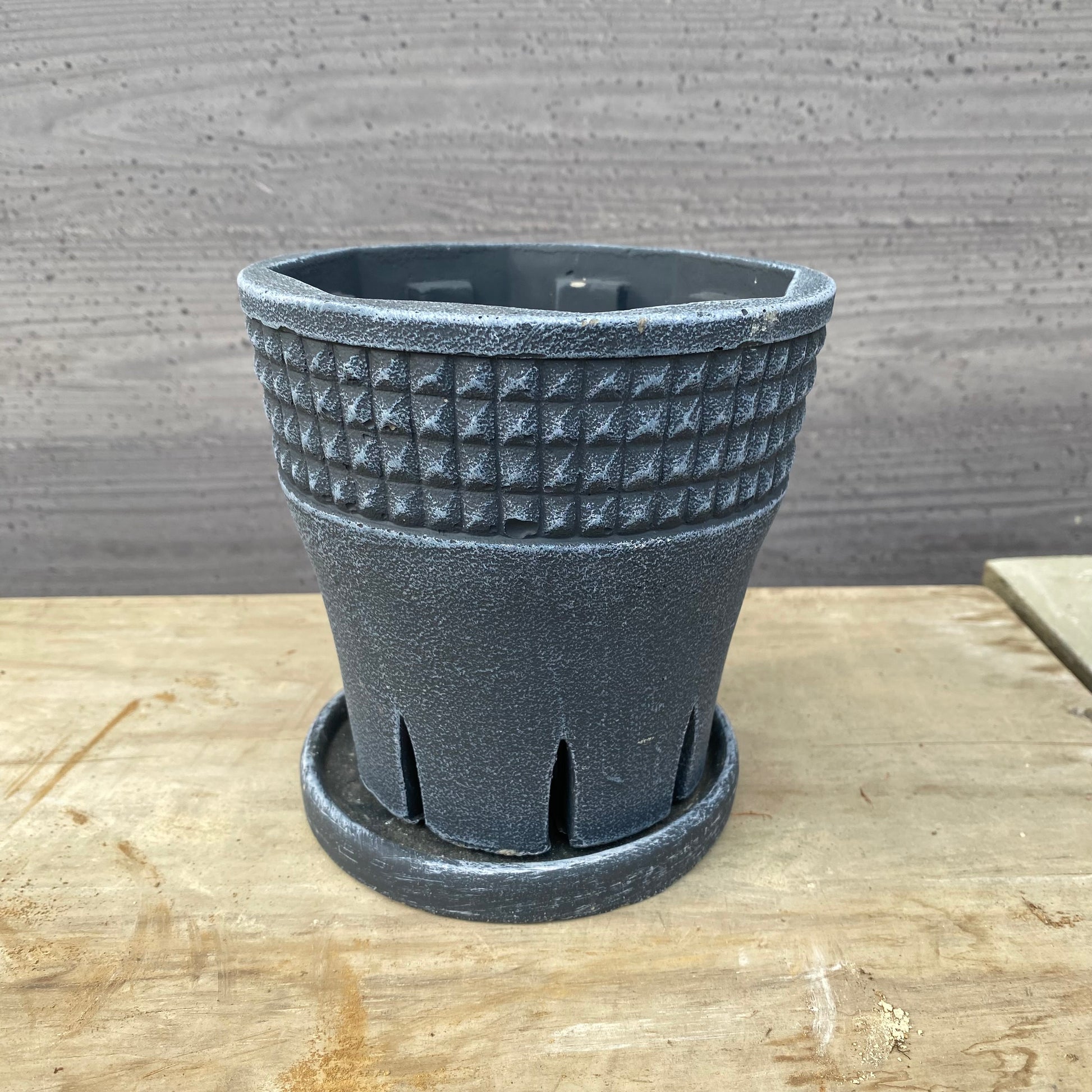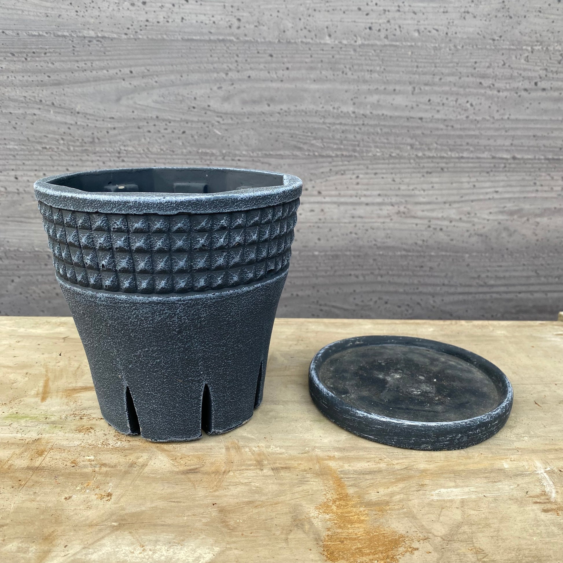 陶器鉢 スリットポット ブラック 受け皿付き